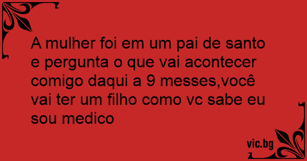 A mulher foi em um pai de santo e pergunta o que vai acontecer comigo daqui a 9 messes,você vai ter um filho como vc sabe eu sou medico