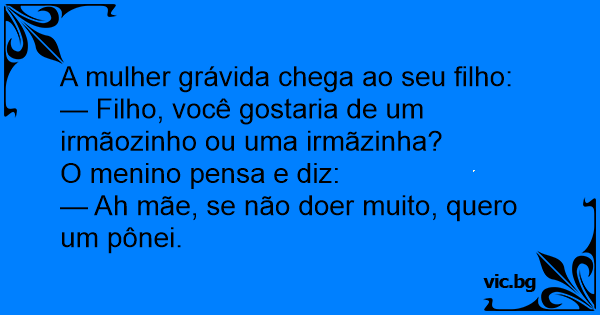 — Filho, você gostaria de um irmãozinho ou uma irmãzinha?