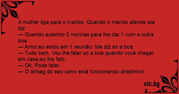 — Amor,eu estou em 1 reunião. Me diz só a boa.