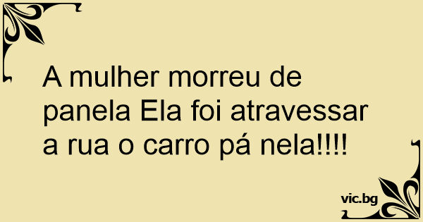 A mulher morreu de panela Ela foi atravessar a rua o carro pá nela!!!!