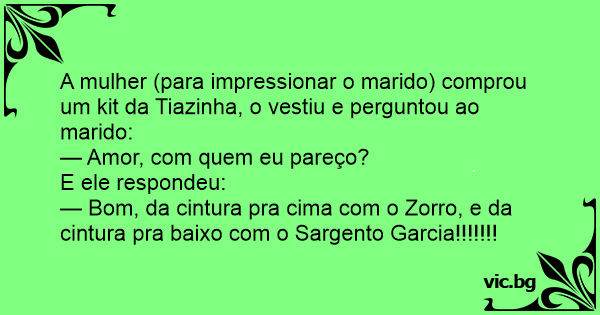 — Bom, da cintura pra cima com o Zorro, e da cintura pra baixo com o Sargento Garcia!!!!!!!
