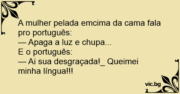 A mulher pelada emcima da cama fala pro português: