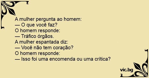 A mulher pergunta ao homem:...