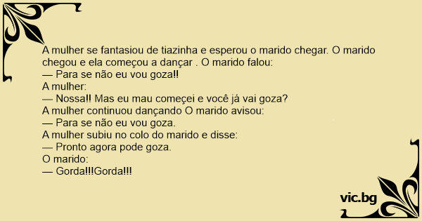 A mulher se fantasiou de tiazinha e esperou o marido chegar. O marido chegou e ela começou a dançar . O marido falou: