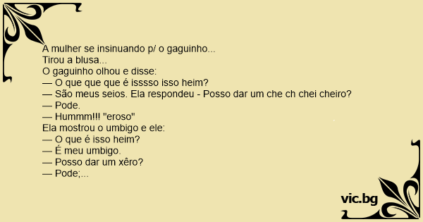 O gaguinho olha sério p/ a mulher e diz: