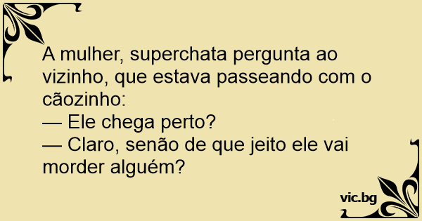 A mulher, superchata pergunta ao vizinho, que estava passeando com o cãozinho:
