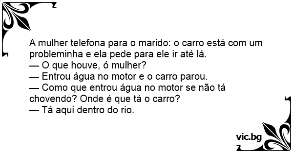 — Como que entrou água no motor se não tá chovendo? Onde é que tá o carro?