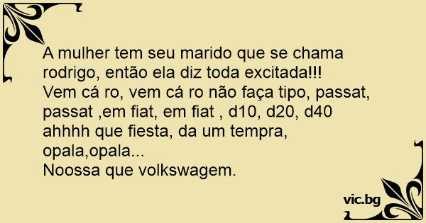 A mulher tem seu marido que se chama rodrigo, então ela diz toda excitada!!!