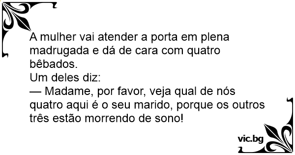 — Madame, por favor, veja qual de nós quatro aqui é o seu marido, porque os outros três estão morrendo de sono!