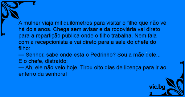 — Senhor, sabe onde está o Pedrinho? Sou a mãe dele...