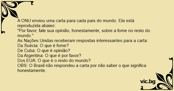 OBS: O Brasil não respondeu a carta por não saber o que significa honestamente.