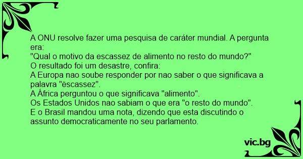 A ONU resolve fazer uma pesquisa de caráter mundial. A pergunta era: