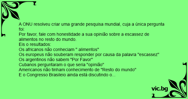 A ONU resolveu criar uma grande pesquisa mundial, cuja a única pergunta foi: