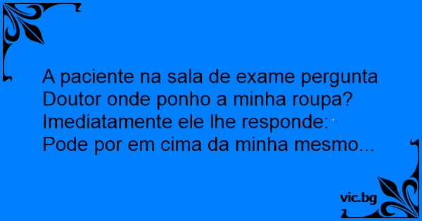 A paciente na sala de exame pergunta Doutor onde ponho a minha roupa?