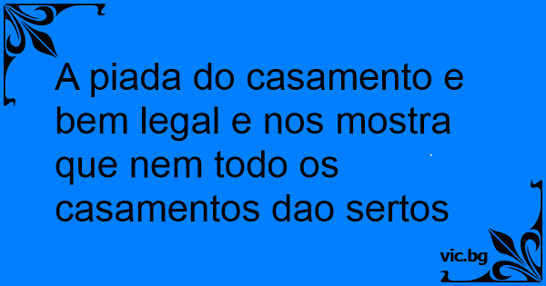 A piada do casamento e bem legal e nos mostra que nem todo os casamentos dao sertos