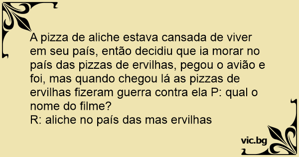 A pizza de aliche estava cansada de viver em seu país, então decidiu que ia morar no país das pizzas de ervilhas, pegou o avião e foi, mas quando chegou lá as pizzas de ervilhas fizeram guerra contra ela P: qual o nome do filme?