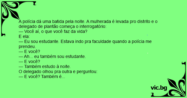 A polícia dá uma batida pela noite. A mulherada é levada pro distrito e o delegado de plantão começa o interrogatório: