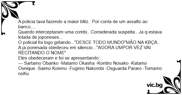 Quando interceptaram uma combi.. Considerada suspeita.. Ja q estava lotada de joponeses...