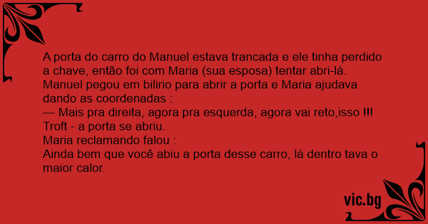 Manuel pegou em bilirio para abrir a porta e Maria ajudava dando as coordenadas :