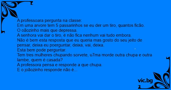 A professoara pergunta na classe: