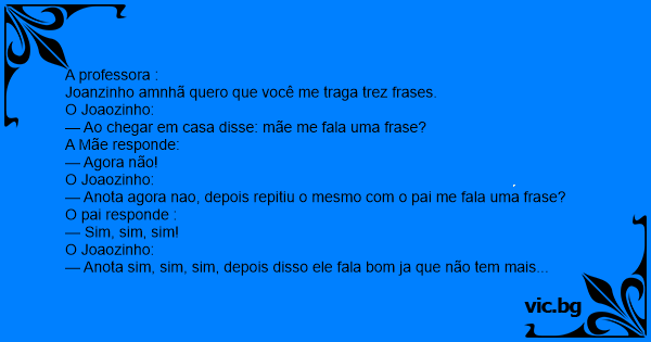 — Joanzinho cade as trez frases que eu te pedi?