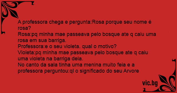 A professora chega e pergunta:Rosa porque seu nome é rosa?