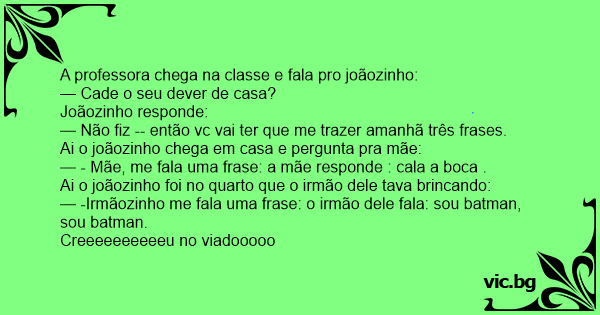 A professora chega na classe e fala pro joãozinho: