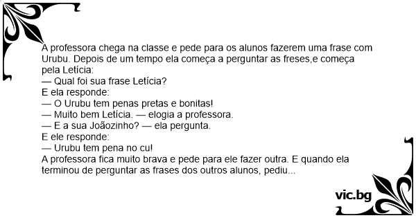 — O Urubu tem pena no pé, porque no cu a professora não quer.