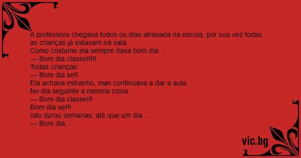 A professora chegava todos os dias atrasada na escola, por sua vez todas as crianças já estavam na sala.