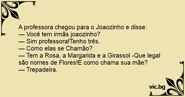 A professora chegou para o Joaozinho e disse: