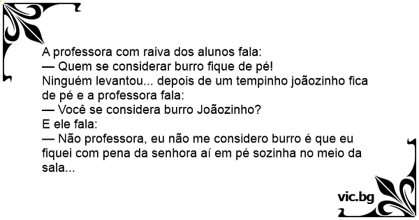 — Não professora, eu não me considero вurrо é que eu fiquei com pena da senhora aí em pé sozinha no meio da sala...