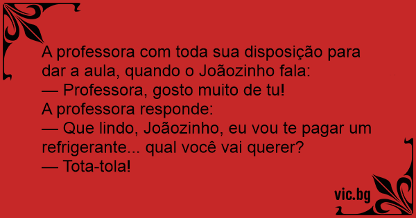 A professora com toda sua disposição para dar a aula, quando o Joãozinho fala: