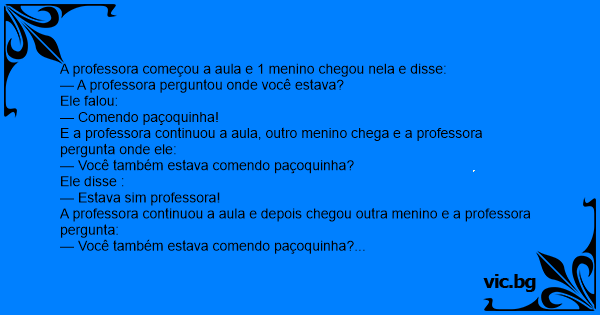A professora começou a aula e 1 menino chegou nela e disse:
