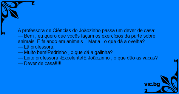 A professora de Ciências do Joãozinho passa um dever de casa:
