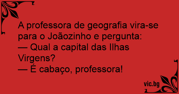 A professora de geografia vira-se para o Joãozinho e pergunta: