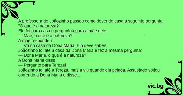 A professora de Joãozinho passou como dever de casa a seguinte pergunta: