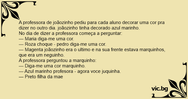 A professora de joãozinho pediu para cada aluno decorar uma cor pra dizer no outro dia. joãozinho tinha decorado azul marinho.