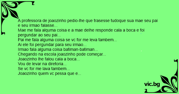 A professora de joaozinho pedio-lhe que trasesse tudoque sua mae seu pai e seu irmao falasse...