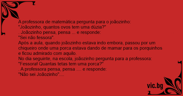 No dia seguinte, na escola, joãozinho pergunta para a professora: