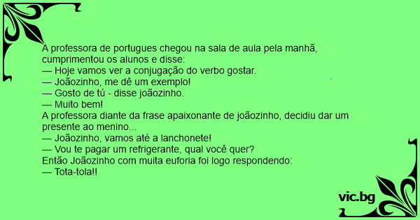 A professora de portugues chegou na sala de aula pela manhã, cumprimentou os alunos e disse: