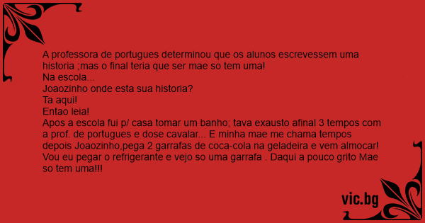 A professora de portugues determinou que os alunos escrevessem uma historia ;mas o final teria que ser mae so tem uma!