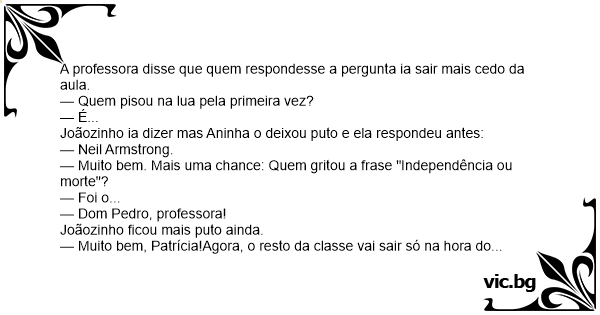 A professora disse que quem respondesse a pergunta ia sair mais cedo da aula.