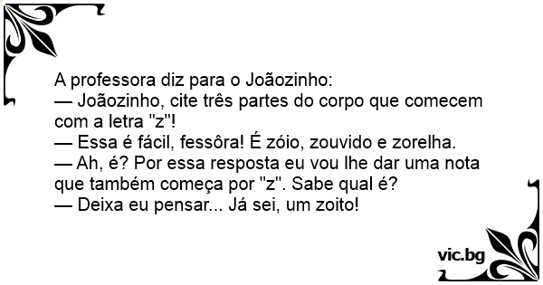 — Joãozinho, cite três partes do corpo que comecem com a letra "z"!