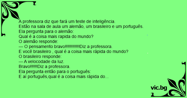 E você brasileiro , qual é a coisa mais rápida do mundo?