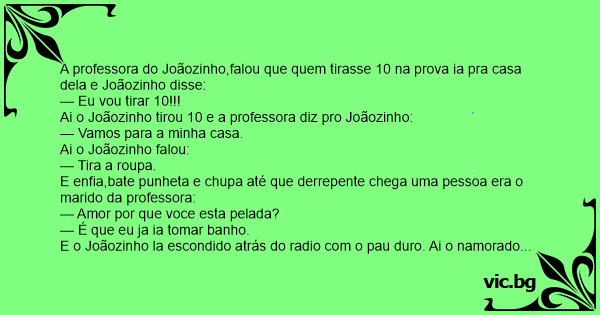 Ai o Joãozinho tirou 10 e a professora diz pro Joãozinho: