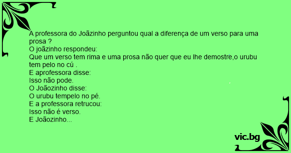 A professora do Joãzinho perguntou qual a diferença de um verso para uma prosa ?