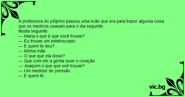 A professora do joõjinho passou uma licão que era para trazer alguma coisa que os medicos usavam para o dia seguinte.