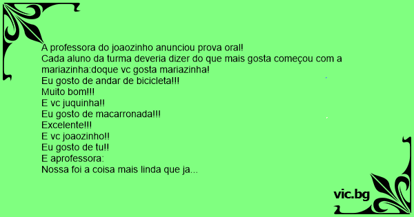 A professora do joaozinho anunciou prova оrаl!
