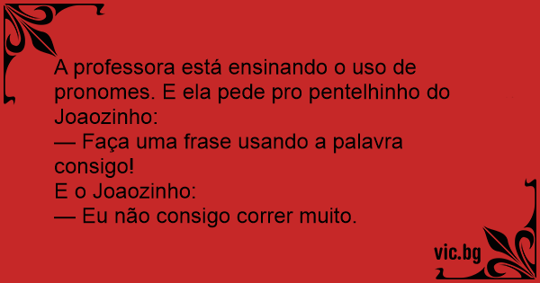 A professora está ensinando o uso de pronomes. E ela pede pro pentelhinho do Joaozinho:
