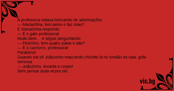 Quando ela vê Joãozinho mascando chiclete lá no fundão da sala, grita nervosa: